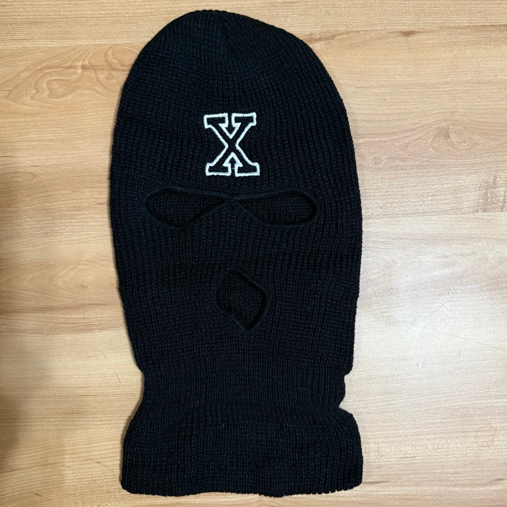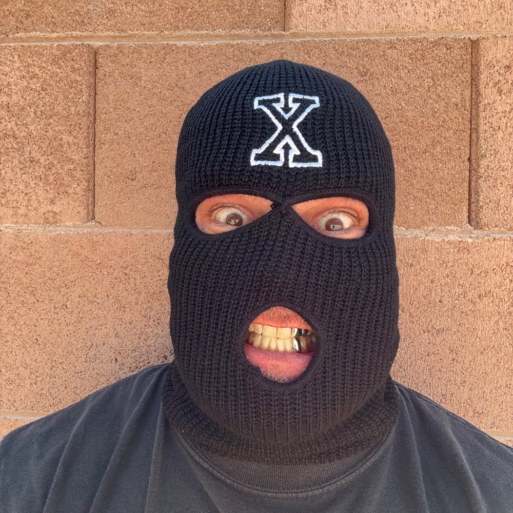 Our signature X embroidered on the forehead of a black, 100% acrylic (all vegan, duh) ski mask.