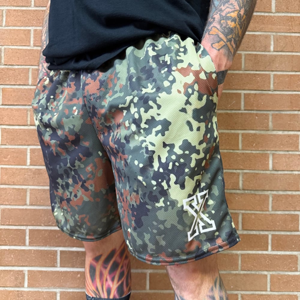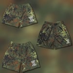 Your choice of 3 different styles of Flecktarn camo print shorts with our signature X on the left leg. These shorts are fully sublimated, not some cheap garbage made in our arts and crafts room. SEE SIZING GUIDE IN LAST SLIDE OF PHOTOS.