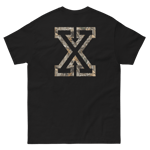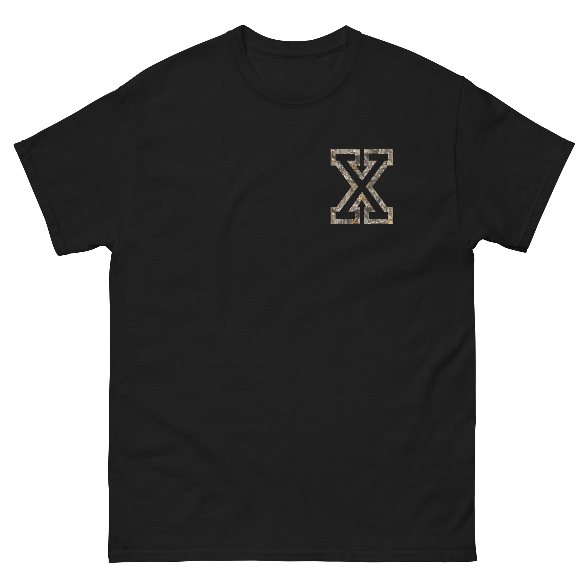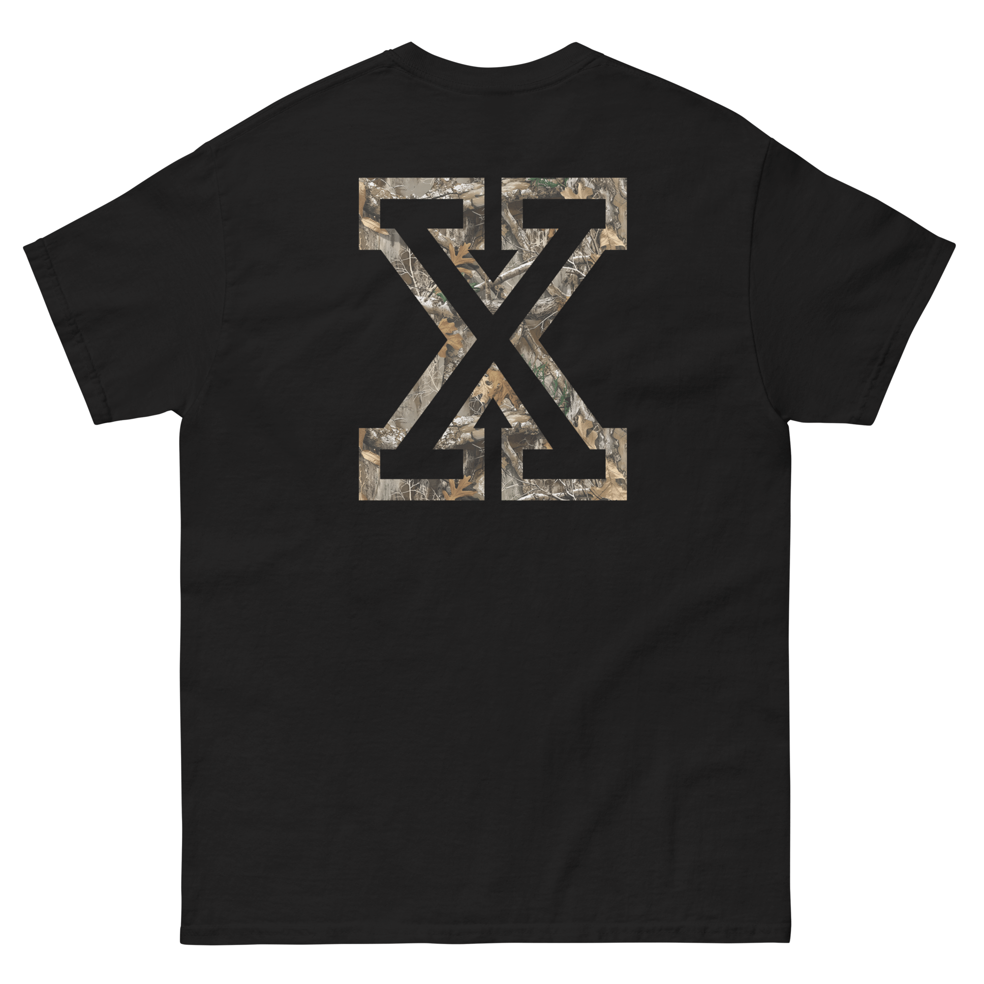 Our signature X pocket print shirt in Tree Camo with Big X back print comes as a high quality 2 sided print on your choice of Gildan 5000 heavyweight or Comfort Colors 1717 100% cotton BLACK t-shirts. (See links for full specs)